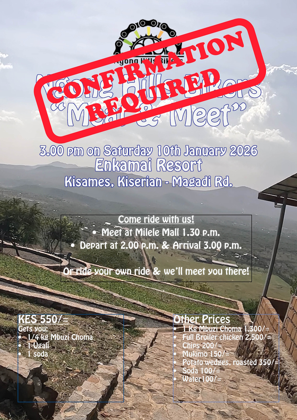 The Ngong Hill Bikers Group (Community or “Nyumba Kumi”) is part of the Privae Bikers Association of Kenya (PBAK).